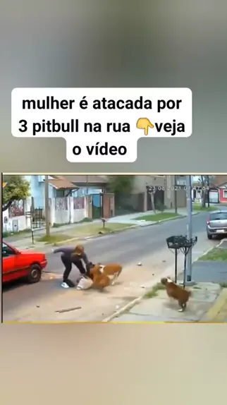 mulher é atacada por 3 putbull na rua👇veja o video #kwai #noticias