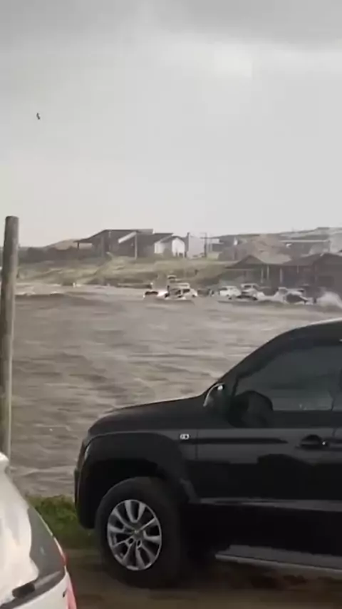 馃毃AGORA: Laguna, localizada no Litoral Sul de Santa Catarina, foi atingida por um tsunami meteorol贸gico que resultou em ondas abruptas, arrastando carros ao atingir a praia. #SC #Laguna #Tsunami
