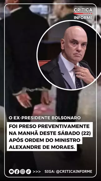 Ex-presidente Jair Bolsonaro é PR350 preventivamente por determinação de Alexandre de Moraes. SIGA: @criticainforme para ver mais!📌 (Mídia/Reprodução: @???/Internet) #Bolsonaro #Pr1sao #STF #PoliticaBrasileira #Brasil
