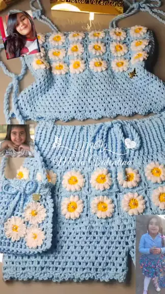Conjunto infantil:Blusa+Short+bolsinha 🩵🩵🥰 Confeccionado sob medida para a Princesa Karoll🫅👑 Que amor!!!!😇🥰 #crocheinfantil #lookmenina #viralvideos #maeartesa #crochetdesigner
