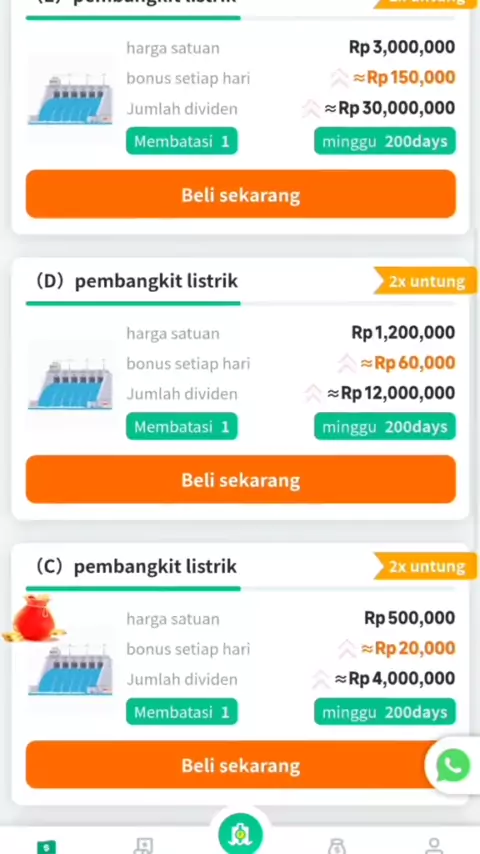 ๐๐ฉ๐๐๐ญ๐ ๐๐๐ซ๐ ๐ ๐๐๐ฆ๐๐๐ง๐ ๐ค๐ข๐ญ ๐๐ข๐ฌ๐ญ๐ซ๐ข๐ค : Selama Promo Hari Raya :_ Pembangkit Listrik A sementara Habis._ Harga beli pembangkit listrik ๐ adalah 200rb, siklus 200 hari, keuntungan harian 4% adalah 8000rp, dan total keuntungan 1,6jt._ Harga beli pembangkit listrik ๐ adalah 500rb, siklus 200 hari, keuntungan harian 4% adalah 20,000rp, dan total keuntungan 4jt#cuarentena #uang #udictionarymagic #cuan #modalrebahan๐ธ #kliklinkwadiprofilku