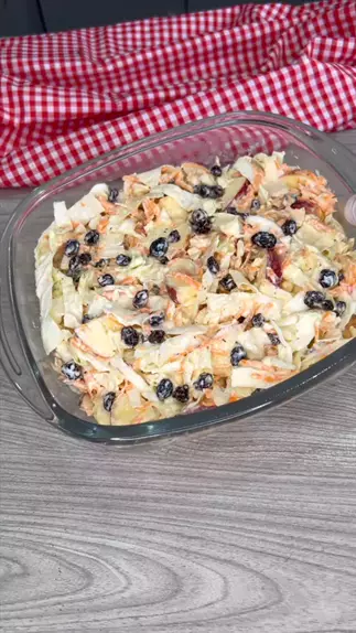 Salada americana de repolho fácil e cremosa Ingredientes: 1/2 repolho,1 cenoura ralada,1/2 xícara de uvas-passas,2 maçãs,1 copo de iogurte natural,3 colheres de sopa de maionese,1 limão espremido,azeite a gosto,1 pitada de sal,1 pitada de orégano,1 pitada de pimenta do reino. #salada #repolho #receitafacil