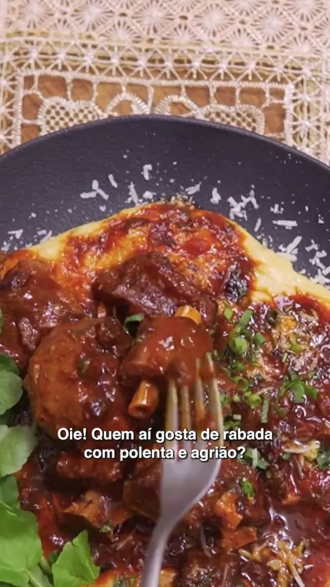 Rabada de boi com polenta e agrião 😋 #maisviews #viraliza #receitassimples #Receitas💐 #comidaboa