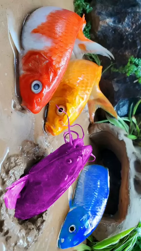 Hot dog sedang mencari mainan, ikan hias di sungai, ikan lele, koi, video kura-kura lucu.