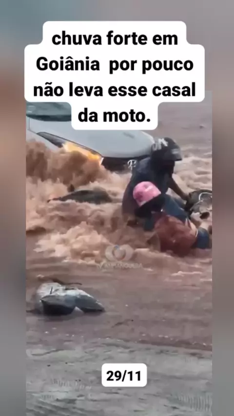 chuva forte em Goiânia leva casal de moto. #notícia