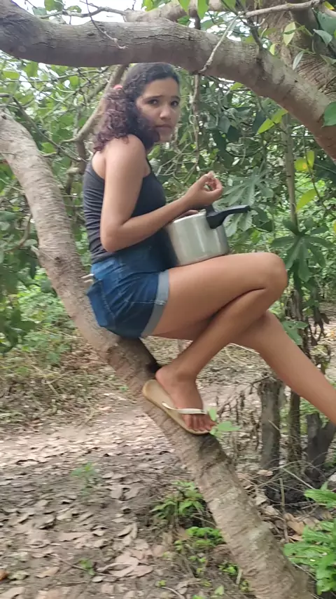 olha a carinha dela almoçando no pé de caju