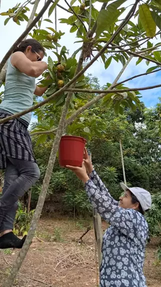 Colhendo Canistel a exótica fruta ovo ou sapota amarelo