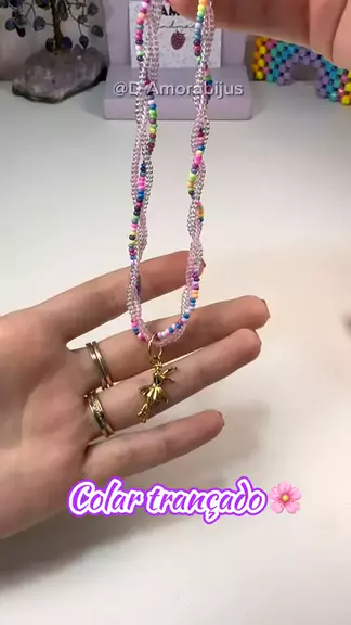 Colar Trançado de Miçangas 🌸💜 . . . #colardemiçangas #colar #miçangascoloridas #acessoriosdemiçangas #feitoamão