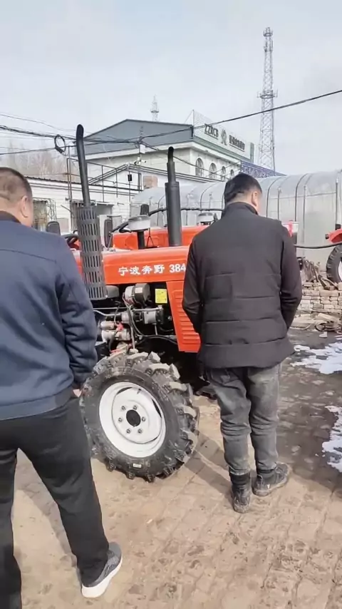 Traktor penggerak empat roda. Roda tiga diesel. Alat mesin pertanian