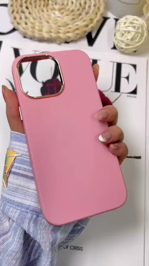 Capa de silicone para celular com botão de moldura dourada, toque confortável