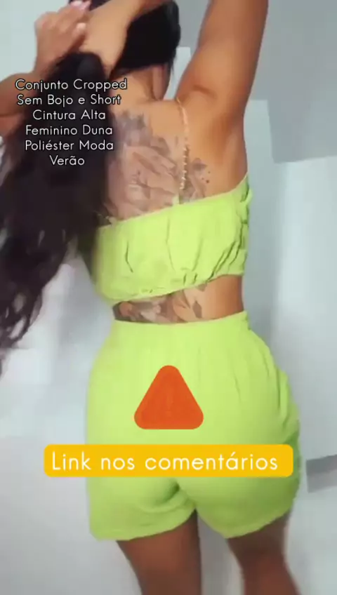 Conjunto Cropped Sem Bojo e Short Cintura Alta Feminino Duna Poliéster Moda Verão #verão #achadinhos🔥🔥🔥 #CarnaKwaiComigo