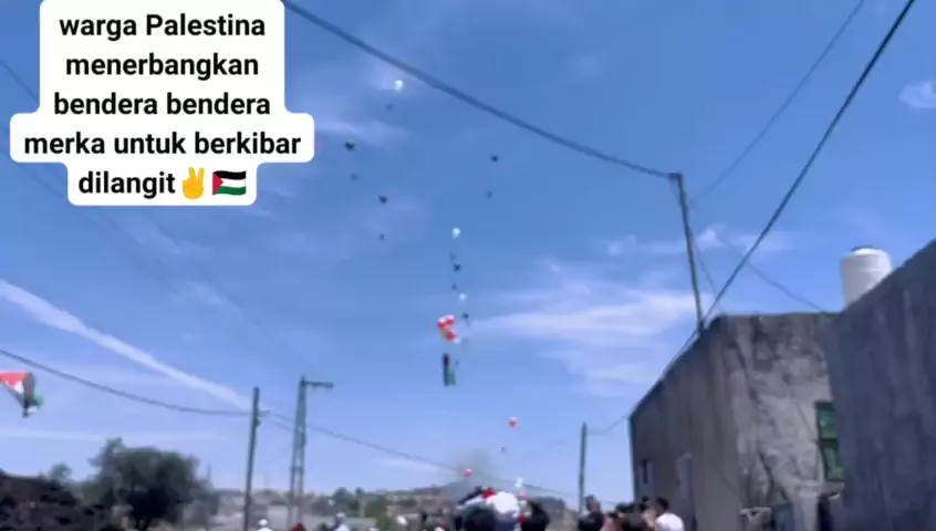 Setelah pasukan pendudukan Israel dan pemukimnya menurunkan bendera Palestina dari kutub... Warga Palestina🇵🇸🇵🇸🇵🇸✌ meluncurkan ratusan bendera di Tepi Barat yang diduduki untuk berkibar di langit Palestina yang diduduki #palestina #gaza #fyp #fy