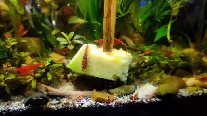satu keluarga makan alpukat . Cherry shrimp #udang #aquarium #SnackStyle #aquascape #hobiikan
