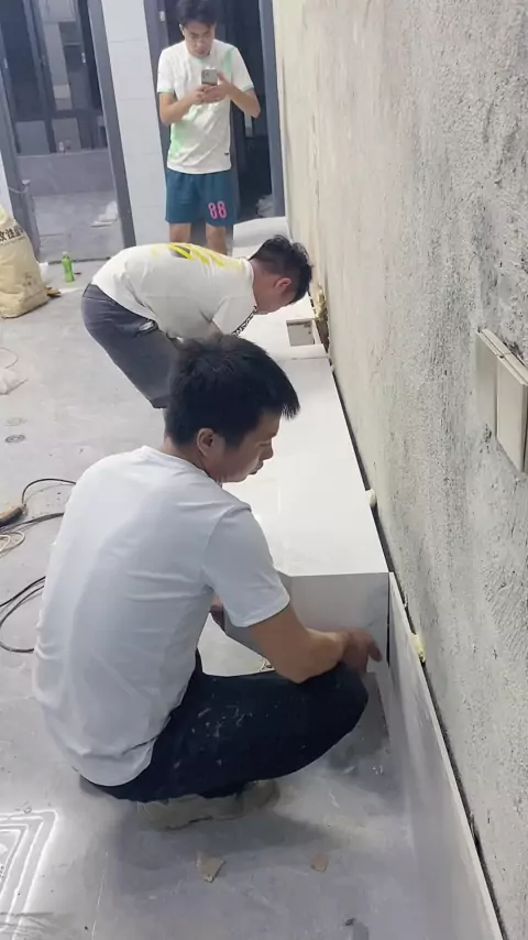 Proses pemasangan dinding latar belakang gantung baru