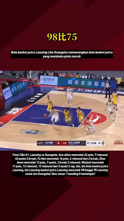 98-75! Di final CBA G1, tim bola basket putra Liaoning Like Guangsha memenangkan kemenangan! # Liaoning putra mengalahkan tim bola basket Guangsha dengan 24 poin # Guo Ailun # CBA Final (Sunting: Angin)