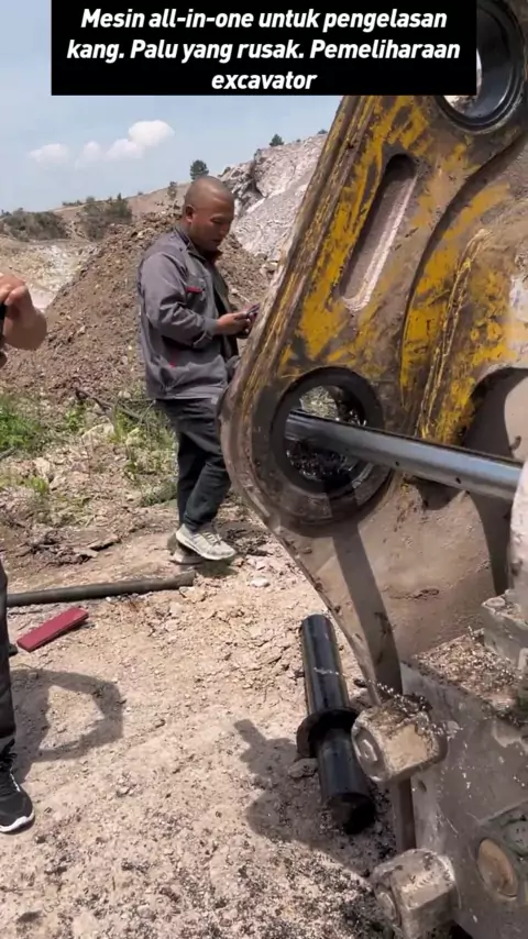 Mesin all-in-one untuk pengelasan kang. Palu yang rusak. Pemeliharaan excavator