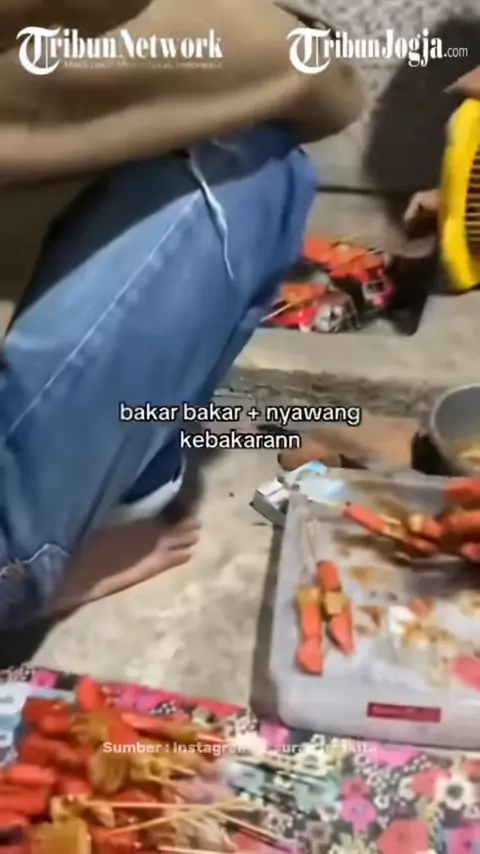 Kumpulan orang-orang santai walau ada kebakaran di dekatnya