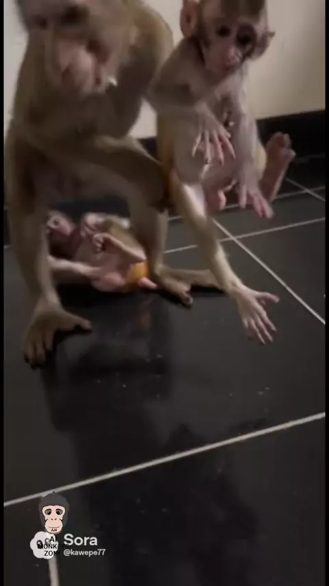 “The little monkey is being bullied by the big monkey.” #Monyet_Dihajar_Monyet #