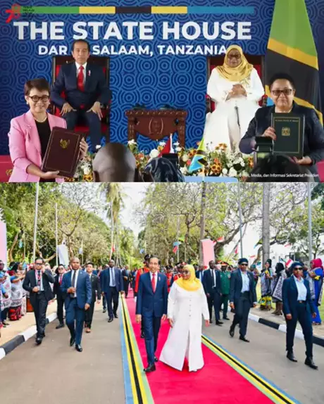 Penyambutan Kenegaraan Presiden Jokowi di Tanzania, Dar es Salaam, 22 Agustus 2023 | Sumber: ยฉ BPMI Setpres ๐ฎ๐ฉ ๐น๐ฟ #jokowi #samiasuluhuhassan #Tanzania #fyp #viral