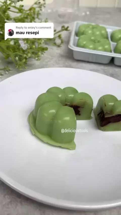 Replying to @eniey selamat mencoba kak ππ» . Puding Pandan Filling Coklat Bahan : 1 bungkus agar2 75gr santan instan 800gr air 150gr gula pasir (bisa dikurangi selera) 1sdm endapan pandan Filing coklat secukupnya Cara membuat: -campur semua bahan, lalu masak sampai mendidih. - tuang ke cetakan separuh, tunggu setengah beku. - masukkan filling coklat - tutup kembali dengan adonan agar2. - biarkan hingga set - sajikan dingin π Cetakan menggunakan model sakura & aloha Rp.20.000/12pc. Bisa di...