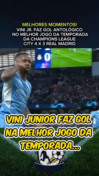 VINI JR. FAZ GOL ANTOLÓGICO NO MELHOR JOGO DA TEMPORADA DA CHAMPIONS LEAGUE CITY 4 X 3 REAL MADRID #city #uefa #championsleague #Champions #2025internationalshortvideocompetition