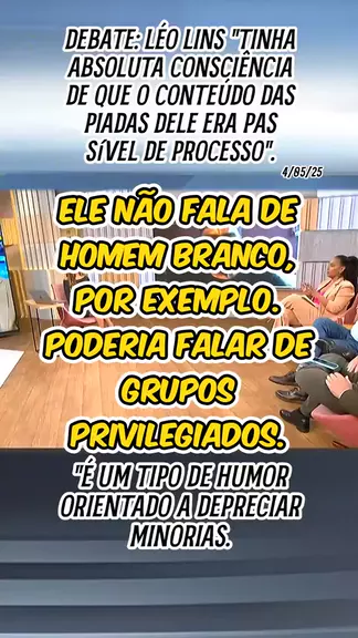 Mas fala de gordo, de idoso, de negros, indígenas, pessoas com deficiência. Isso é grave vindo de alguém que tem consciência de uma legislação que pune esse tipo de comportamento. #LéoLins # #LiberdadedeExpressão #debate #ÚltimasNotícias #KwaiNotícias