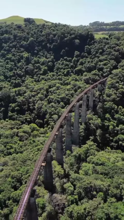Viaduto Mula Preta é um dos mais “temíveis” viadutos da região em Dois Lajeados. O viaduto, na Ferrovia do Trigo, possui incríveis 98m de altura e uma curva de 380m de extensão. O motivo de ser o mais radical de todos, é que durante toda a sua extensão ele é completamente vazado. O viaduto integra o passeio de Trem dos Vales. O viaduto fica a 16 km da cidade de Dois Lajeados. 🚂 🛤 📍Viaduto Mula Preta - Dois Lageados, RS #viaduto #Trem #riograndedosul #Ferrovia #destinomaisincriveis