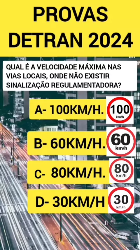 Qual é a velocidade máxima nas vias locais, onde não existir sinalização regulamentadora? #provadodetran #simuladodetran #sejacriador