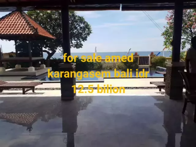 For sale beachfront villa Location of Amed beach, Karangasem, Bali Land area 19 acres or 1900m² Bedroom 3 Bathroom 4 Kitchen Living areas Large garden The car garage is enough for 5 cars Shm IMB complete Price IDR 12.5 billion negotiable Wa 085738172362 Jundevbaliproperty
