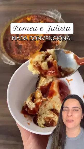 Romeu e Julieta de forno 😋 👉 Anota a receita aí: 🍮 250 g de goiabada, cortada em fatias de cerca de 0,5 cm 🥚 3 ovos 🥛 1 caixinha de creme de leite 🧀 1 potinho de requeijão ou cream cheese Modo de preparo: 1️⃣ Coloque as fatias de goiabada no fundo de um refratário; 2️⃣ Misture os ovos, o creme de leite e o requeijão (ou cream cheese) até formar uma massa homogênea; 3️⃣ Despeje essa mistura sobre a goiabada; 4️⃣ Leve ao forno pré-aquecido a 180°C por 25 a 30 minutos ou até dourar por cima