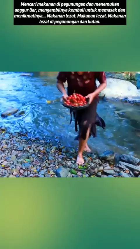 Mencari makanan di pegunungan dan menemukan anggur liar, mengambilnya kembali untuk memasak dan menikmatinya... Makanan lezat. Makanan lezat. Makanan lezat di pegunungan dan hutan.