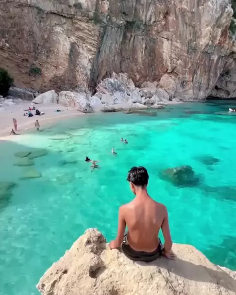 ese lugar paradisíaco fica na Sardenha Itália com muitos penhascos e água cristalina