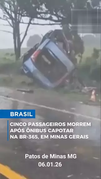 Cinco Pessoas morreram após ônibus tombar em Patos de Minas MG 06.01.26