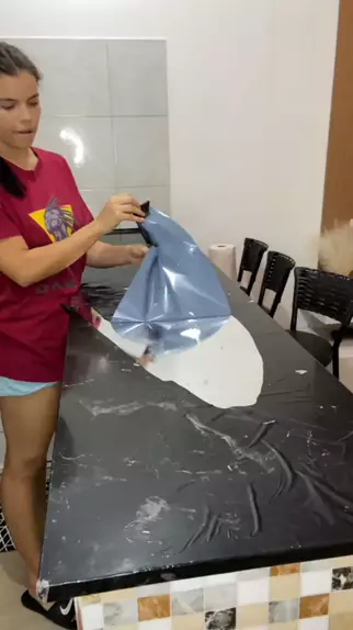 Envelopamos essa bancada há quase um ano e olha o que aconteceu quando tirei o papel #envelopamento #envelopandomoveis #facavocemesma #dicas #donadecasa