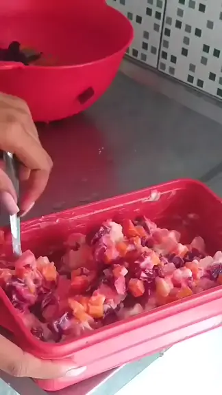 Oi, meus amores!!!😍 Vai uma saladinha aí? Genteee eu adoro essa salada de maionese. A batata eu cozinhei separada e coloquei sal na água (ela fica bem mais saborosa) Já a beterraba cozinhei na panela de pressão, coloquei ela uns 5 minutos antes da cenoura, pois o tempo de cozimento da beterraba é mais demorado. Cortei tudo, coloquei maionese e pronto. #kwai #kwaii #receitas #fit #comida