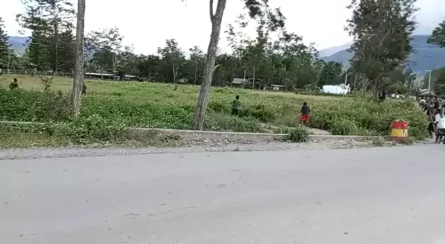 aparat membubarkan perang suku yang belangsung tadi siang, di distrik wouma, kab.jayawijaya papua.
