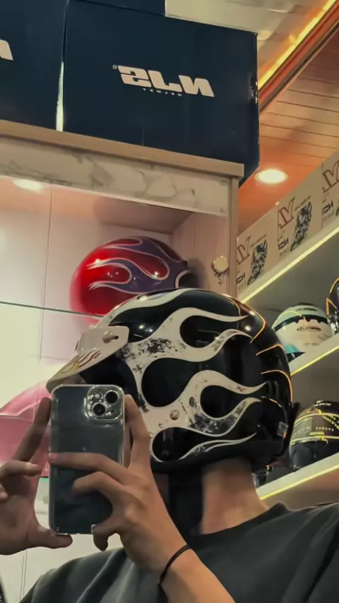 Siapp Tampil Kalcer??? Pake Helm Slim Head Motif ini Auto Kalcer Dijalananš„ #slimhead #motifapi #petapi
