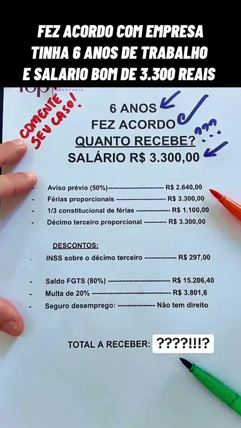 FEZ ACORDO COM EMPRESA TINHA 6 ANOS DE TRABALHO E SALÁRIO BOM DE 3.300 REAIS #advogado #trabalhador #Lei #direitos #justiça