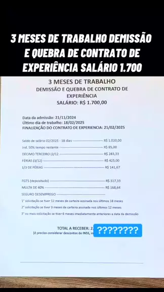 3 MESES DE TRABALHO DEMISSÃO E QUEBRA DE CONTRATO DE EXPERIÊNCIA SALÁRIO 1.700 #advogado #trabalhador #Lei #direitos #justiça