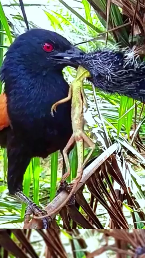 Anak ayam berambut merah melahap kadal besar!