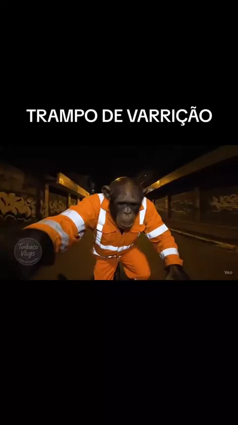 Timbaco trabalhando como varredor de calçada. #ia #ai #veo3 #inteligenciaartificial #chimpanzé
