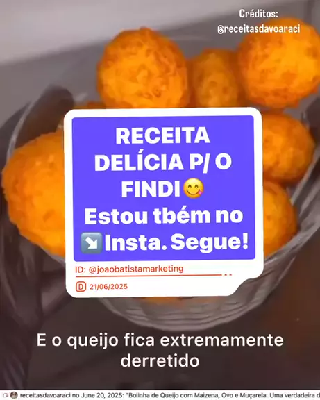 Que coisa boa essa receita! Delícia! Vamos fazer hj aqui! 😋 Quer mais vídeos como esse? Já me segue aqui! Curte! Comenta! Compartilha!💪🏻 A partir de hoje, estou também no Instagram: @joaobatistamarketing Me segue lá também! 🙌🏻🤝 #ReceitasFáceis #BolinhaDeQueijo #CulináriaCriativa #ReceitasCaseiras #joaobatistamarketing