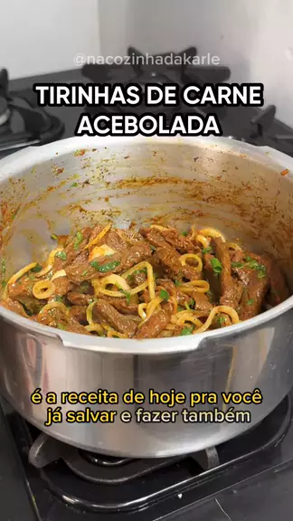 TIRINHAS DE CARNE ACEBOLADA - INGREDIENTES - 500g de patinho - 2 dentes de alho - 2 colheres de molho shoyu - 1 cebola - 1 tomate - sal, pimenta do reino, corante, e cheiro verde a gosto ➡️MODO DE PREPARO NO VÍDEO #carnedepanela #tirinhasdecarne #tirinhasdecarneaceboladas