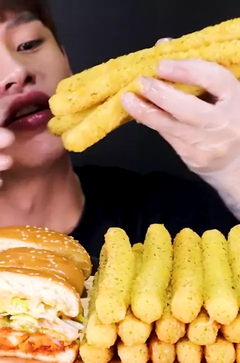 Long Cheese stick squid Burger Corn Salad MukBang~!! #mukbang #yummy #asmrfood #eating