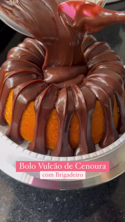Bolo Vulcão de Cenoura com Brigadeiro🥕🍫 Quer aprender mais sobre confeitara? Comente “EU QUERO” e siga nosso perfil @doceriareceitasgourmet . . . #bolos #confeitaria #bolodecenouracomchocolate #bolodecenoura