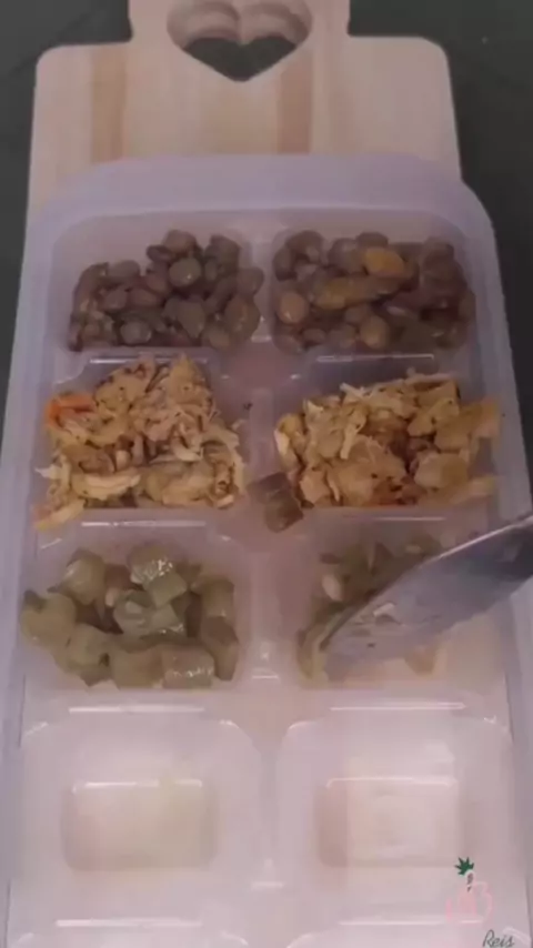Importante: - Coloque etiquetas nos recipientes descrevendo o alimento congelado, a data de preparo e a data de validade que, dependendo do armazenamento, dura em média 30 dias congelado. - Após congelado, os cubinhos de alimentos podem ser retirados das forminhas e armazenados em sacos devidamente etiquetados. - Descongelamento: no dia anterior desça para a parte de baixo da geladeira, ou descongele diretamente em banho-maria ou no microondas. 🚫Não descongelar em temperatura ambiente.