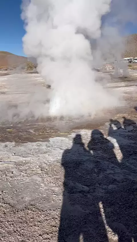 el tatio no Chile jorrando água quente das nacentes #chile #viagem #viajando