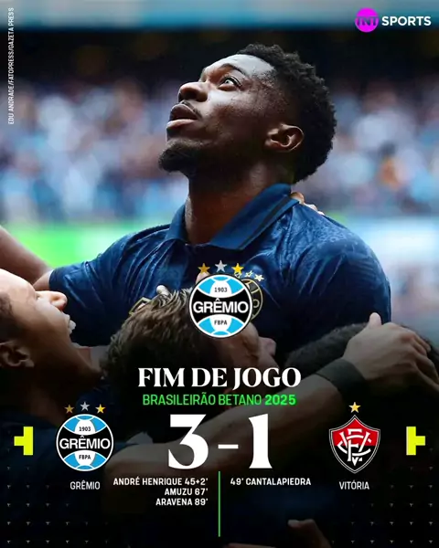 DEU A LÓGICA.! 😃🇪🇪 Grêmio venceu o Vitória na Arena por 3x1 e fizemos o dever de casa. VALEU TRICOLOR DÁ-LHE 👊🏻👊🏻😃😃🇪🇪🇪🇪⚪⚫🔵