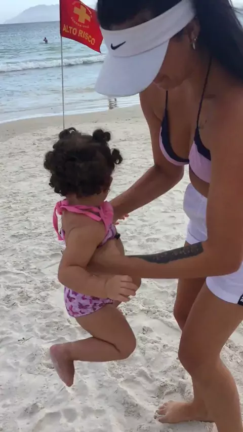 A primeira vez que minha filha foi a praia 😂 #vivaavida #MãeeFilha #maesolo #Comédia #Praia