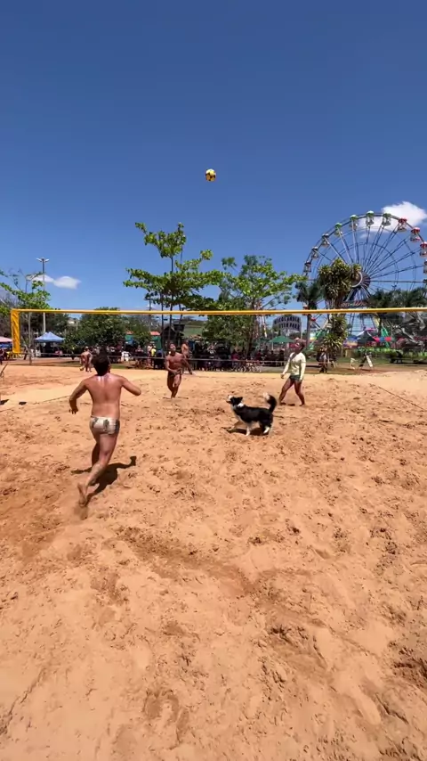 cachorro jogando futvolei #cachorro #futvolei #volei #praia #lazer
